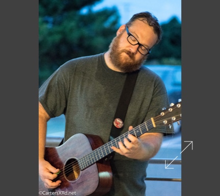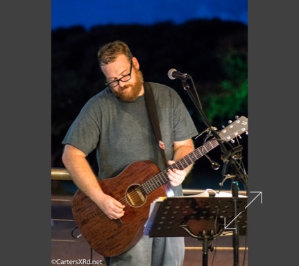 KITTY HAWK, NC — Virginian Matt Holloman was playing at BK Shuckers here on August 3, 2018. He is an old friend of my nephew Eric with whom I attended. Holloman is a quite talented guitarist and singer who performs covers as well as original music. IN addition to his solo performances, he is a member of Zappa tribute band Brown Napkins.