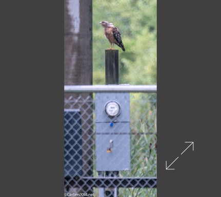 Meter guarding red-shouldered hawk