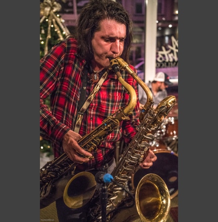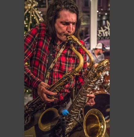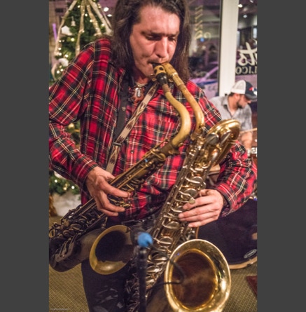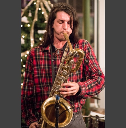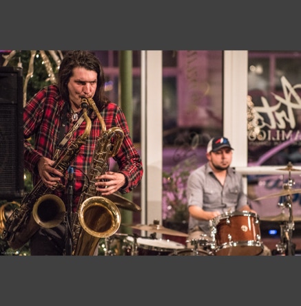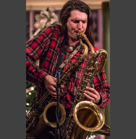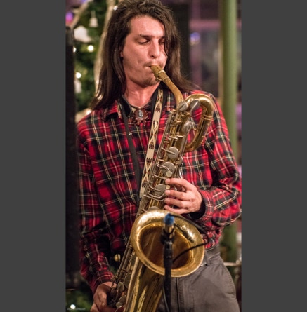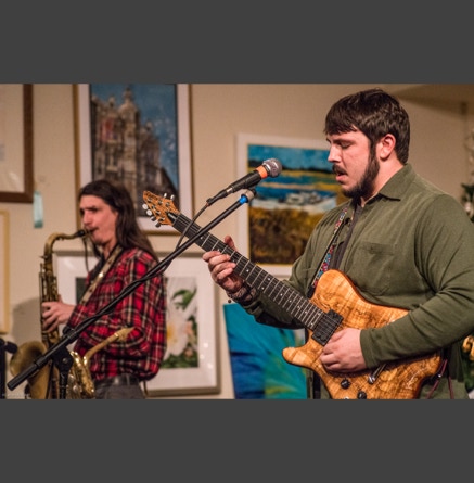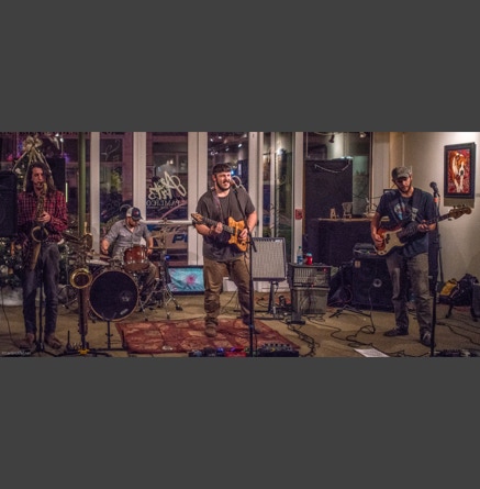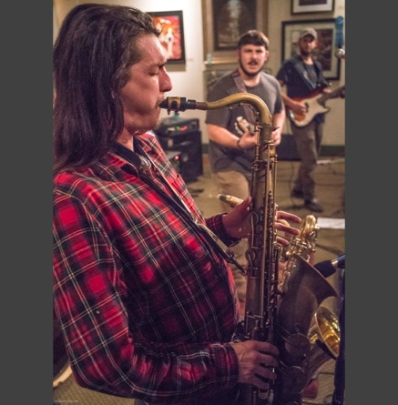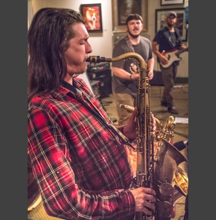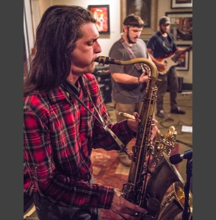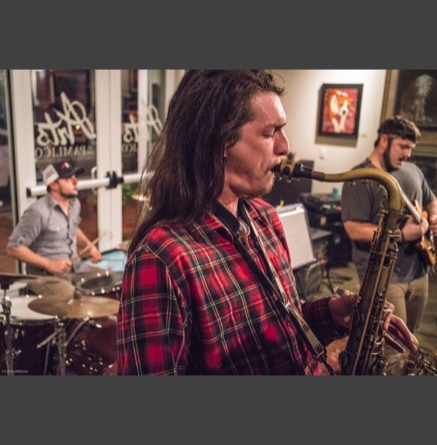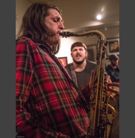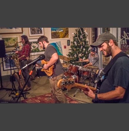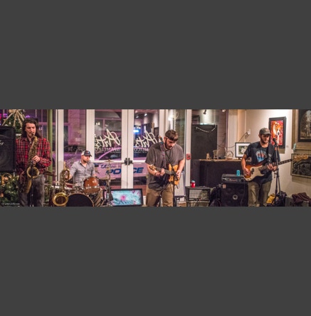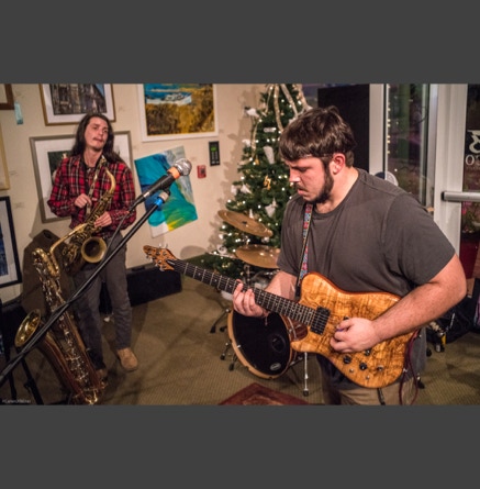 WASHINGTON, NC — This is one fine jam band (they call it PsyloDelic FunkJamRock) from right here in Greenville, NC. I am very sorry I have not seen them before and will be sure to catch them more often. You NEED to see this band, and more than once. These pictures are from their Turnage Theater performance of November 17, 2017. The band is Bryan Quintard, guitar, vocal; Hunter Parker, saxophone; George Thornton, bass; and Tom Barrington, drums. Find them here.