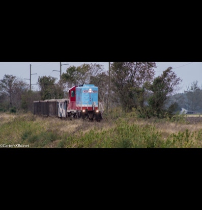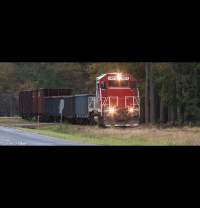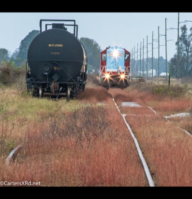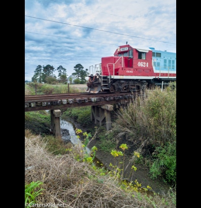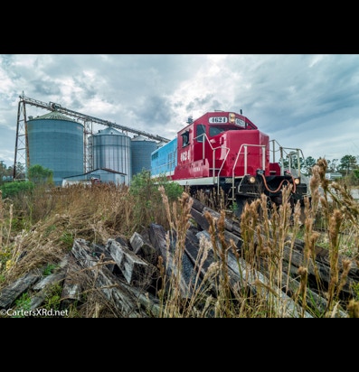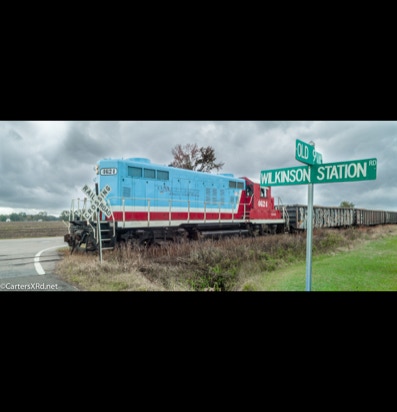 PINETOWN/BELHAVEN, NC — I didn’t plan to chase a train this day, but it was pretty and I just happened to catch Carolina Coastal trains 265 crossing Acre Station. I know a sign when I see it, so off I went all the way to the waterfront Purdue silos and back to Pinetown.