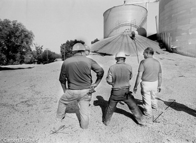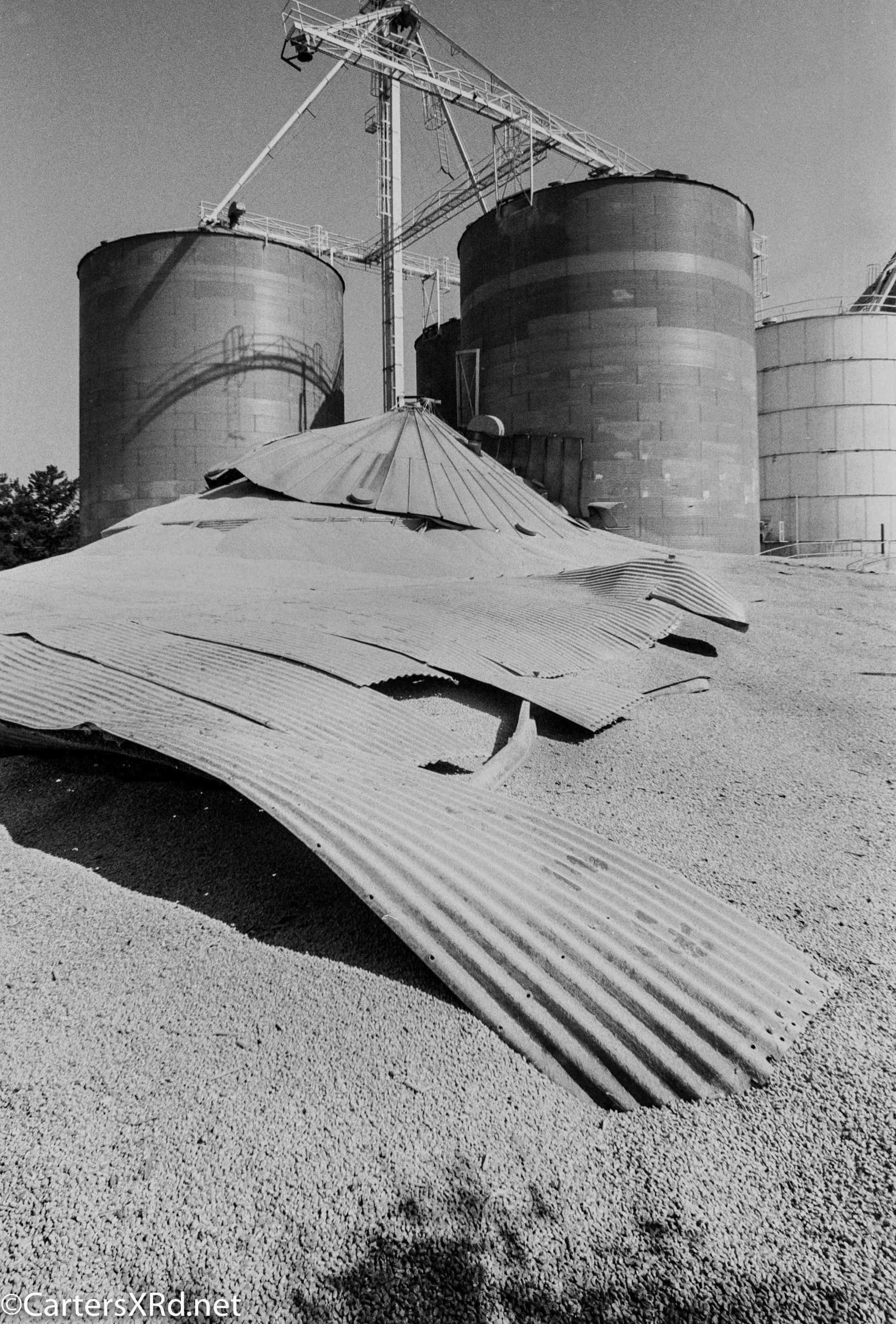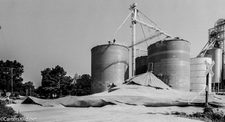 WASHINGTON, NC —In 1987, a large grain silo at what is now Riverside Grain off Hudnell Street split and collapsed. It spilled corn over nearly a city block. The yellow sea was quite a sight. I can only imagine that it must have looked like some organic lava flow as it left the silo and flowed away from it prison. (Click on photos to make them as large as your browser windows will allow.)