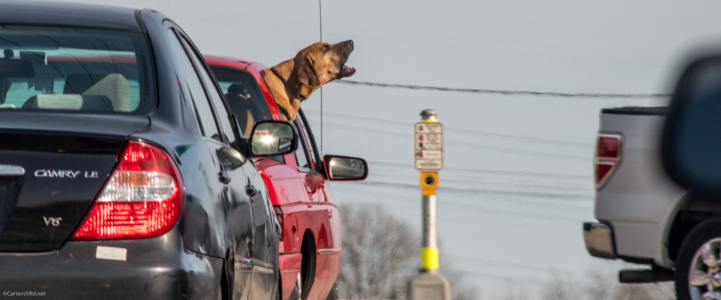 RALEIGH, NC — If you speak dog, you know what this dog is saying is NOT to be repeated in gentle company. That rude truck driver turned across Western Boulevard in front of his master. Uncalled for!! Beats hell out of a puny little import horn.