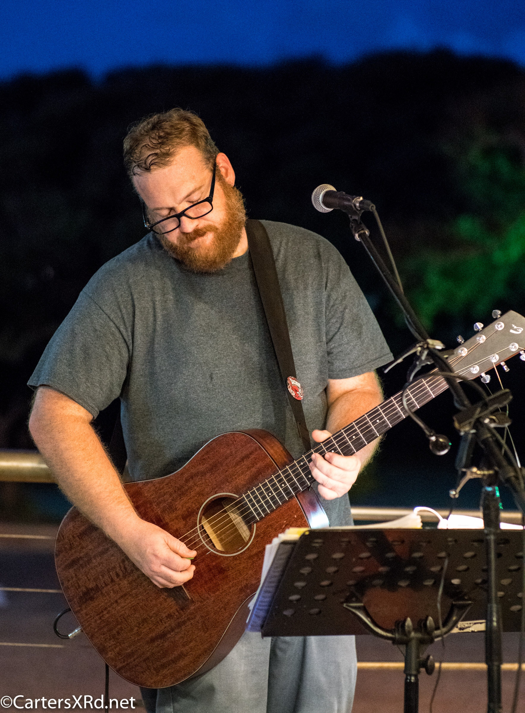 KITTY HAWK, NC — Virginian Matt Holloman was playing at BK Shuckers here on August 3, 2018. He is an old friend of my nephew Eric with whom I attended. Holloman is a quite talented guitarist and singer who performs covers as well as original music. IN addition to his solo performances, he is a member of Zappa tribute band Brown Napkins.
