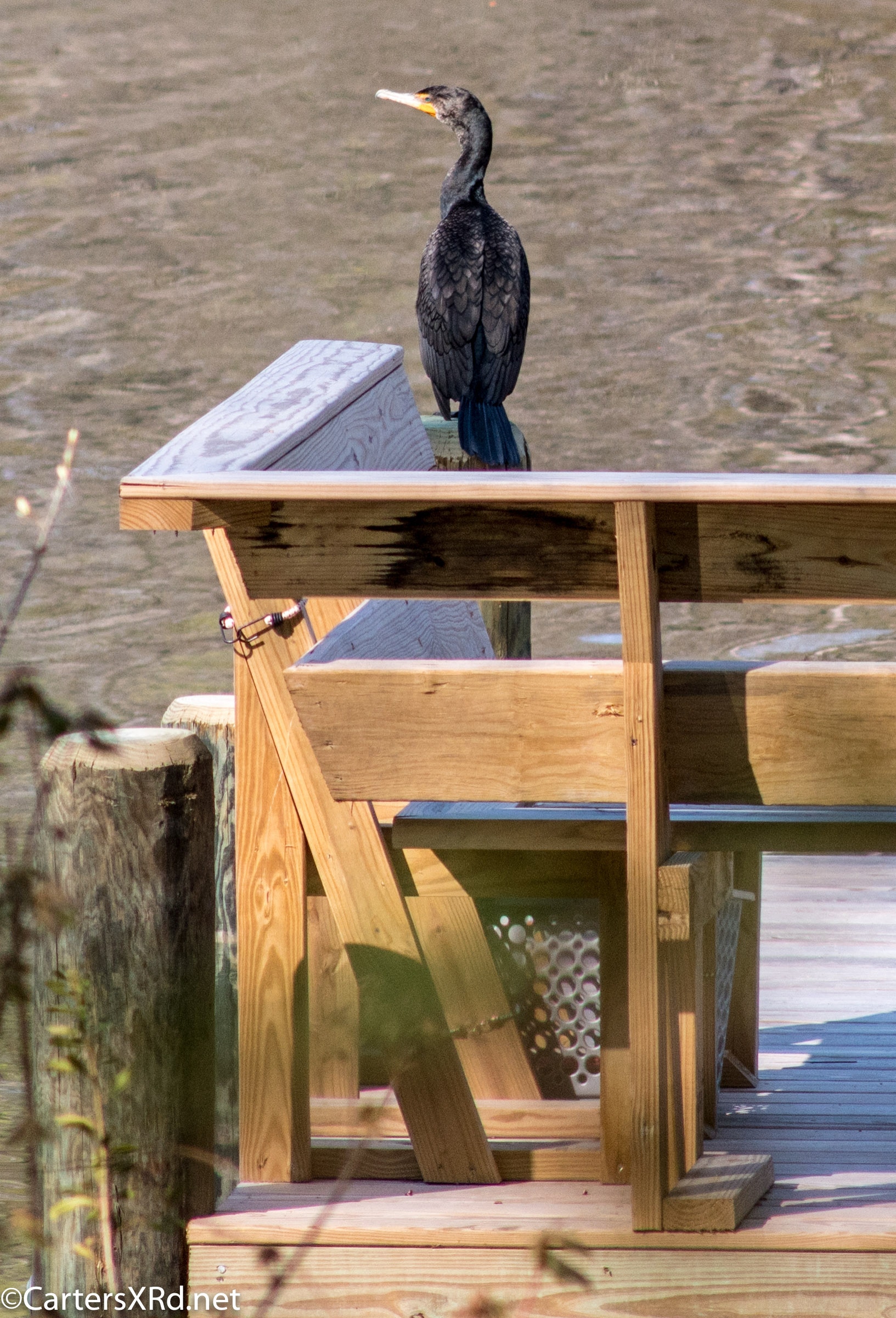 Double-cressted cormorant on our pier