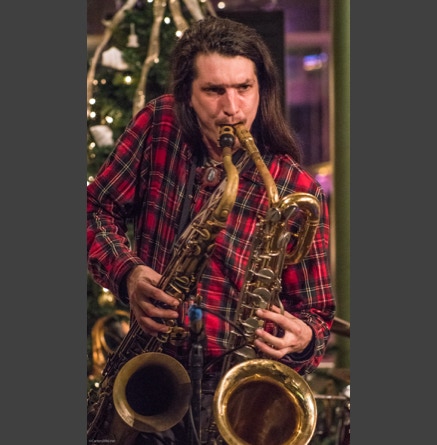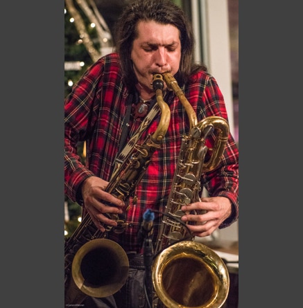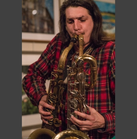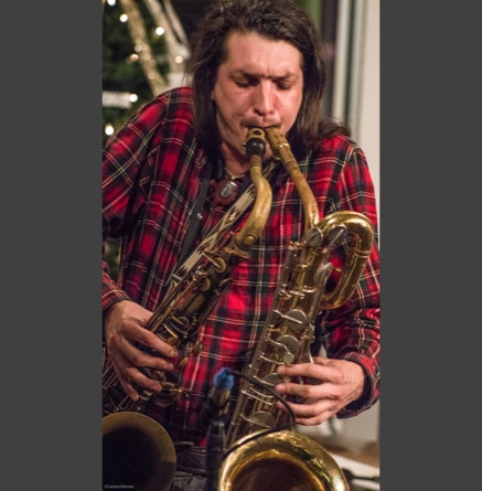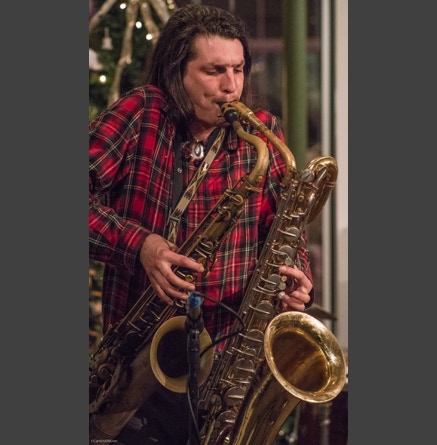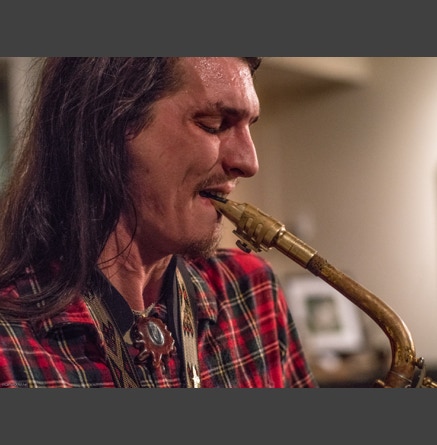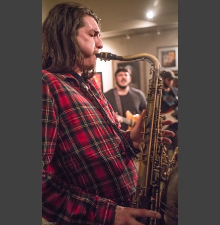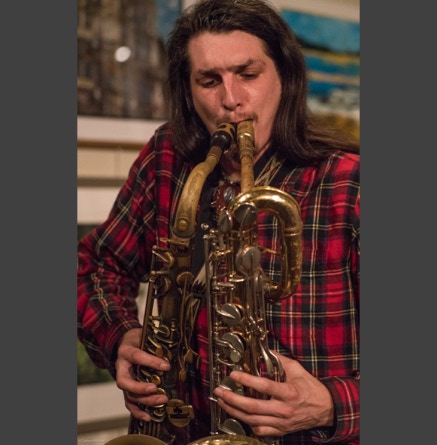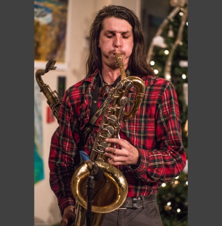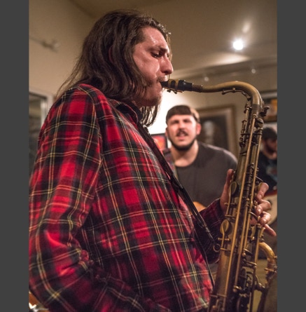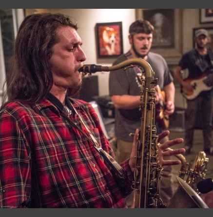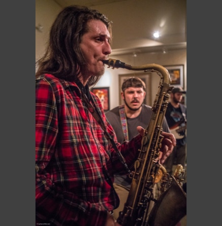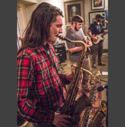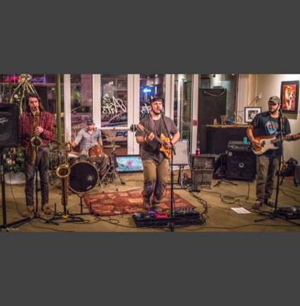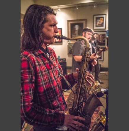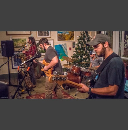 WASHINGTON, NC — This is one fine jam band (they call it PsyloDelic FunkJamRock) from right here in Greenville, NC. I am very sorry I have not seen them before and will be sure to catch them more often. You NEED to see this band, and more than once. These pictures are from their Turnage Theater performance of November 17, 2017. The band is Bryan Quintard, guitar, vocal; Hunter Parker, saxophone; George Thornton, bass; and Tom Barrington, drums. Find them here.