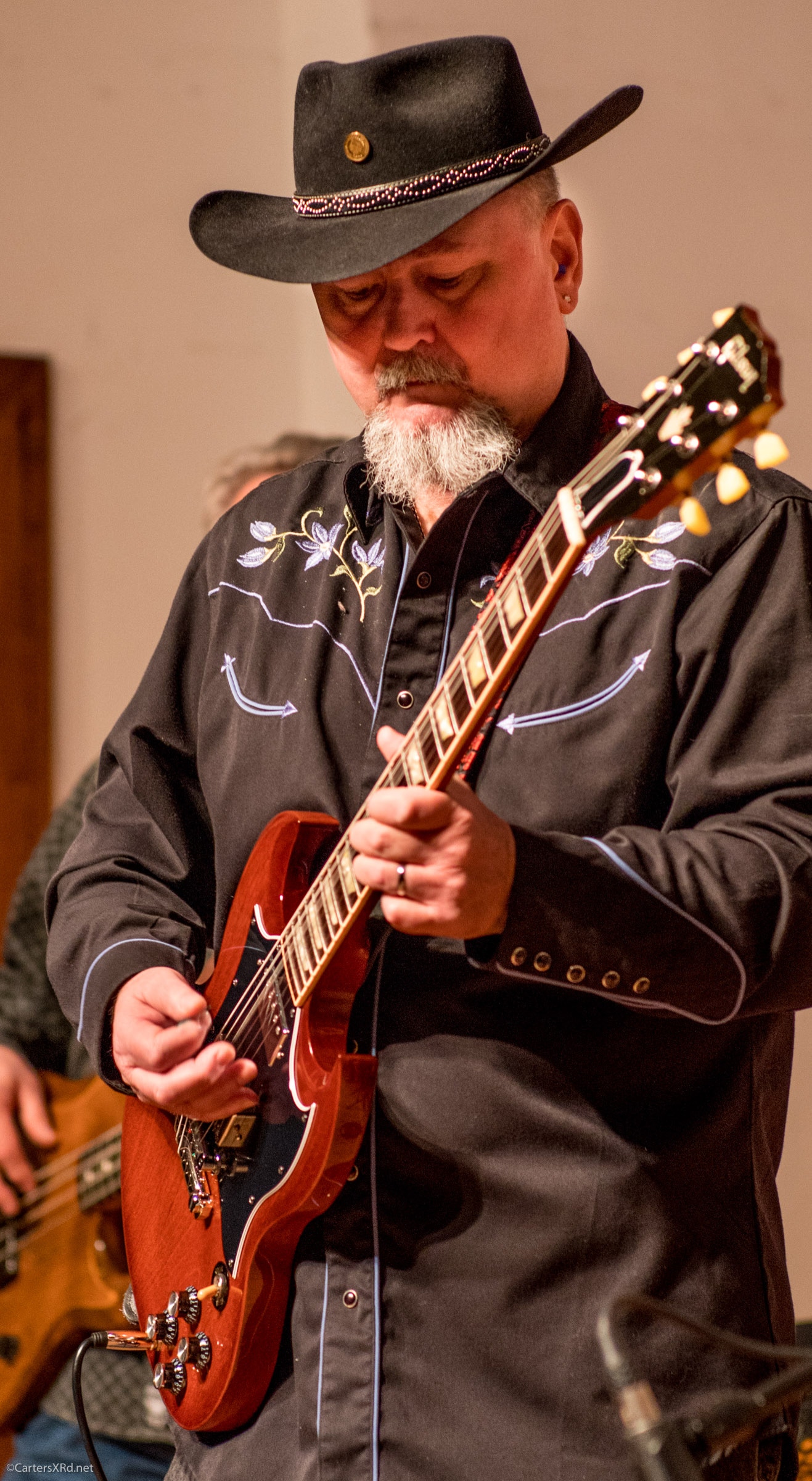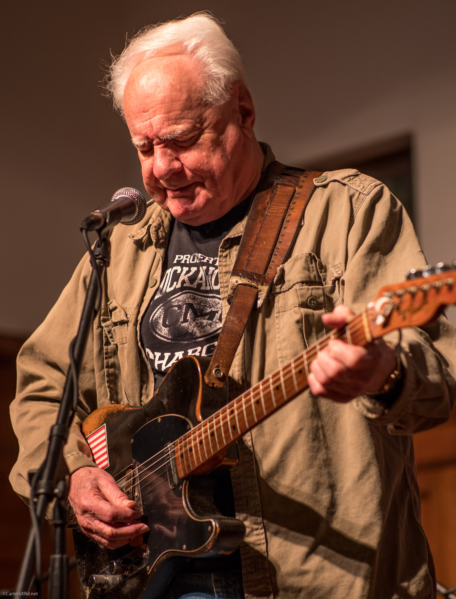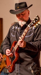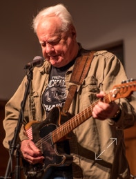 NASHVILLE, NC — Bill Lyerly’s trips home each year have often included a reunion with Clyde Mattocks. Last Thursday, Super Grit Cowboy Band co-founders Bill and Clyde played the Nash Arts Center here in the converted old First Baptist Church. We don’t usually see Mattocks playing guitar other than across his lap, but occasionally he’ll pick up that old Merle Haggard-autographed Telecaster and play it straight up. More photos coming soon. Catch Bill when he’s near you—hey Washington, he’s here next Friday night (February 23) at Market Street Pub.