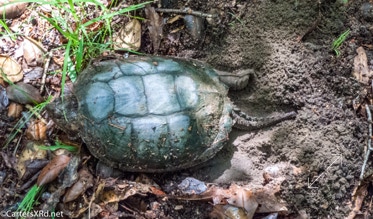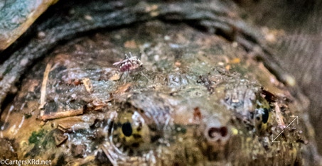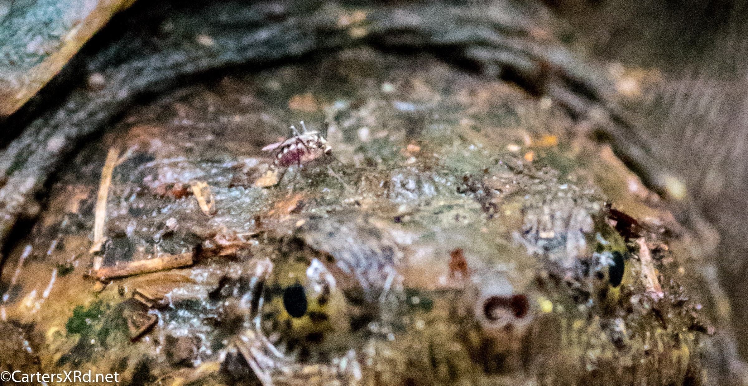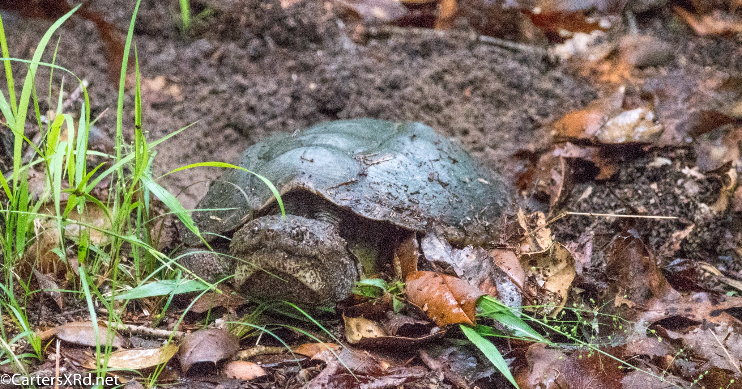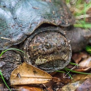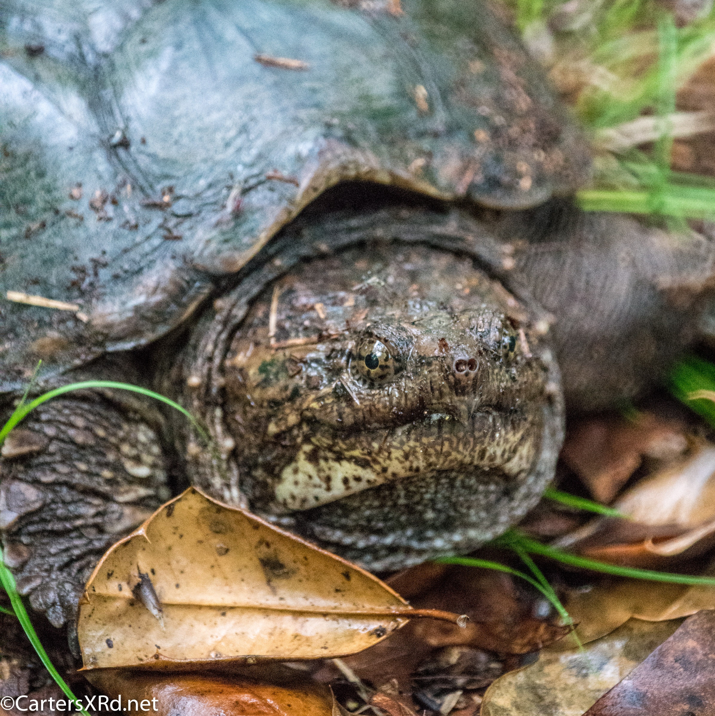 WASHINGTON, NC — We have right many turtles nest in the yard each year. This small snapper dropped by about a month ago to leave her calling card. and future. We generally mark nesting spots so they remain clear for hatchlings to make a break for the swamp. In one frame, you can see that small aggravations find their way into such times—a mosquito grazes on mom’s head as she patiently covers her clutch.