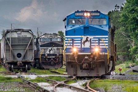 CHOCOWINITY, NC — The Sonic Bonnet NS #4000 was Norfolk Southern's first GE AC44C6M — a Dash 9 rebuild in 2015. She visited Marsden Yard in Chocowinity, NC on July 12, 2018. She is distinguished by a great paint scheme and a nice, simple number. As luck would have it, Norfolk Southern’s #8000 ES44AC was in the yard at the same time giving all us OCDers some satisfaction.