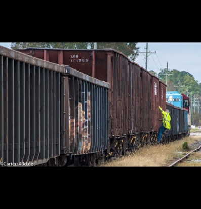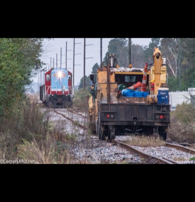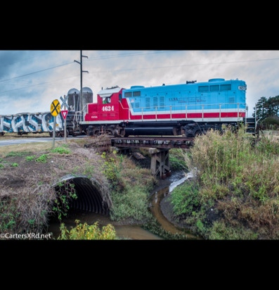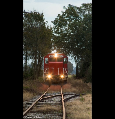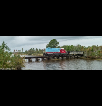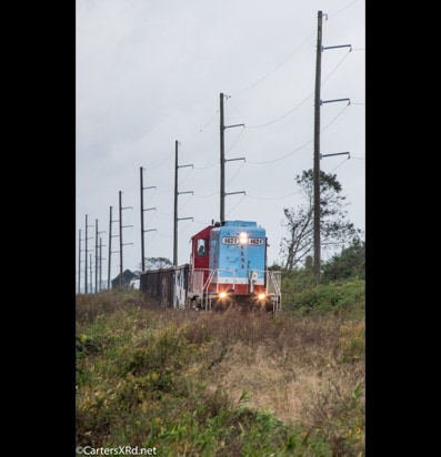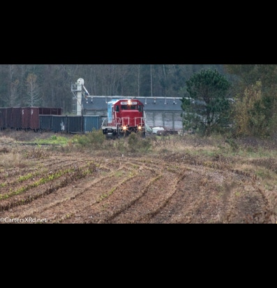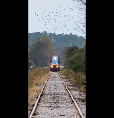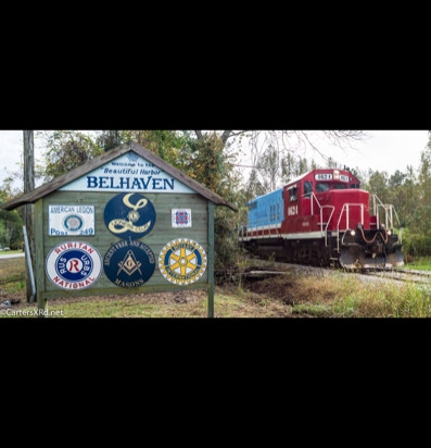 PINETOWN/BELHAVEN, NC — I didn’t plan to chase a train this day, but it was pretty and I just happened to catch Carolina Coastal trains 265 crossing Acre Station. I know a sign when I see it, so off I went all the way to the waterfront Purdue silos and back to Pinetown.