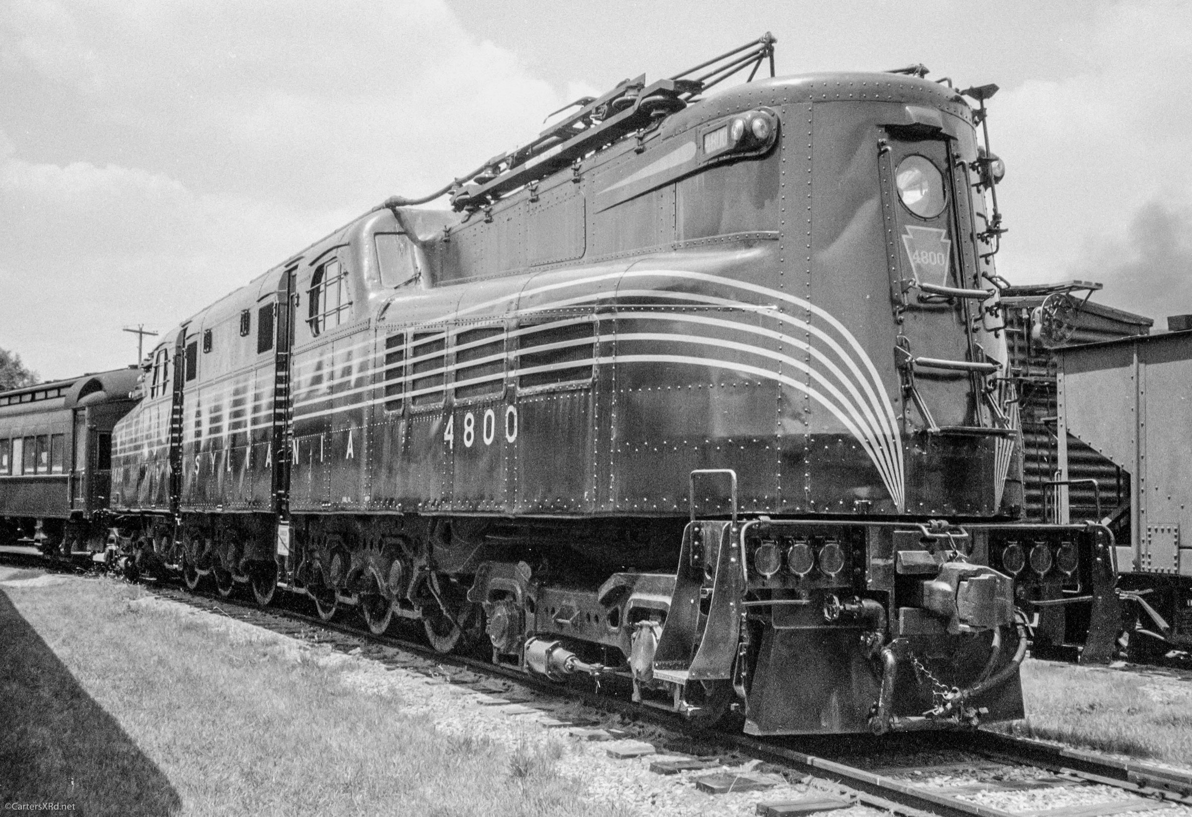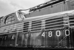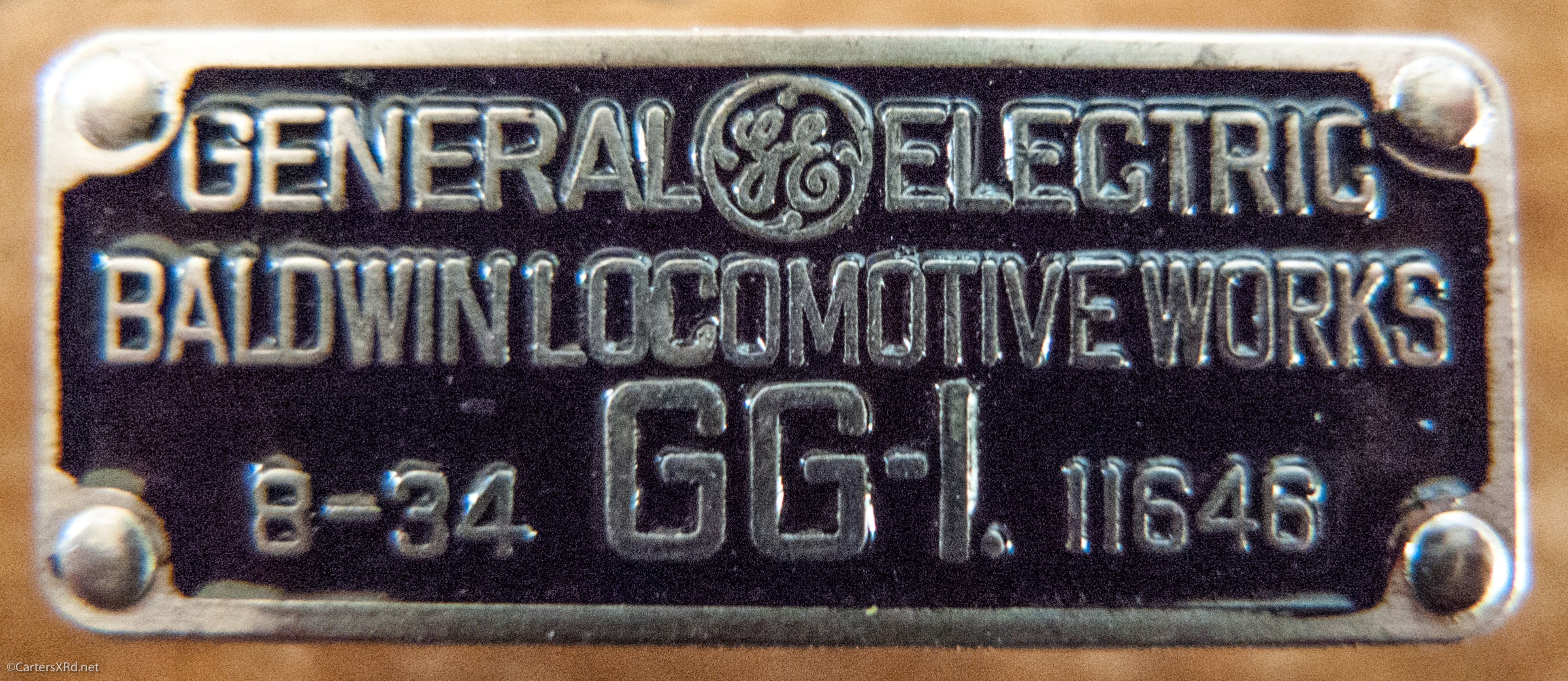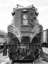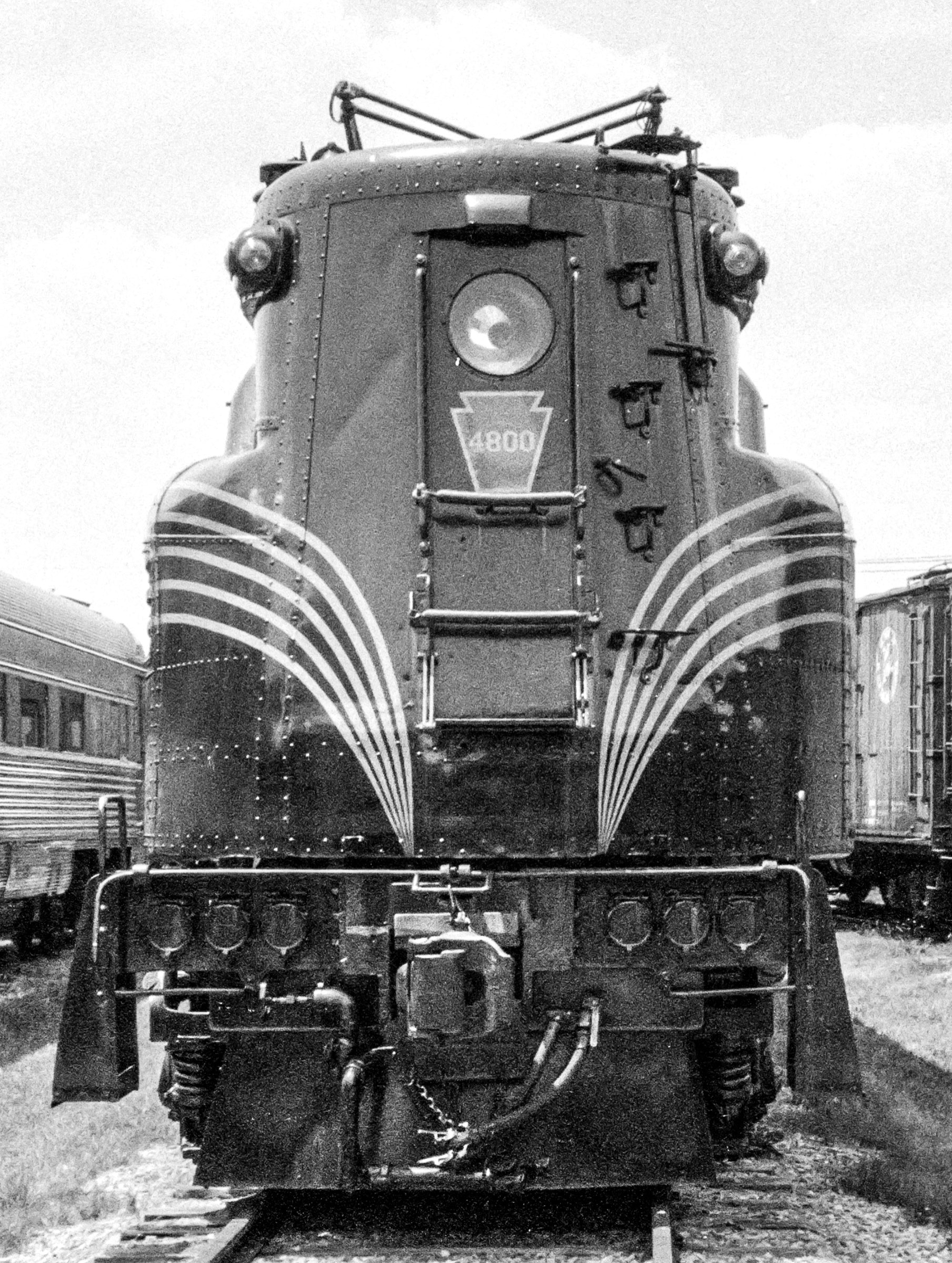 WASHINGTON, NC /STRASBURG, PA— This weekend, a friend gave me a lapel pin. It was one he had had for a while, but, he said, “I can’t think of anyone who would appreciate it more.” It was a one-inch wide copy of the August 1934 builder plate of “Old Rivets,” the original GG-1, the Pennsylvania Railroads then newest electric, 100 mph locomotive. It was a unique design with center cab and a streamlined body. It was GORGEOUS. After a little research, I realized that I had photographed the exact same unit back in 1991. The pin is seen at top, and several of my photos of “Old Rivets” below. Thanks, Bill, I love it.
