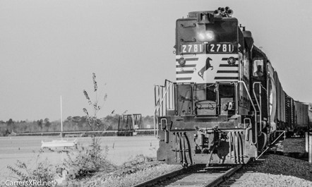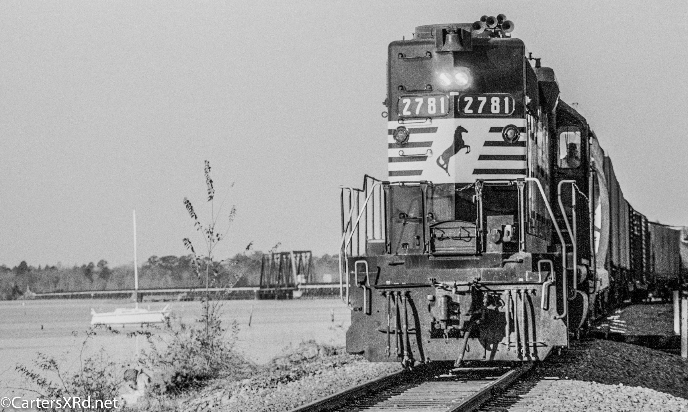 WASHINGTON, NC — We never see Norfolk Southern on the south side of the river anymore. But, back in 1987 when I took this picture, they still made the run to Plymouth most days. This GP38 (now retired for 15 years) was a regular for us in those days. This old Southern Railway locomotive, in newer Norfolk Southern paint, is seen here crossing Jacks Creek at Havens Garden after crossing the Pamlico River Trestle headed toward Plymouth.