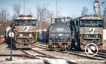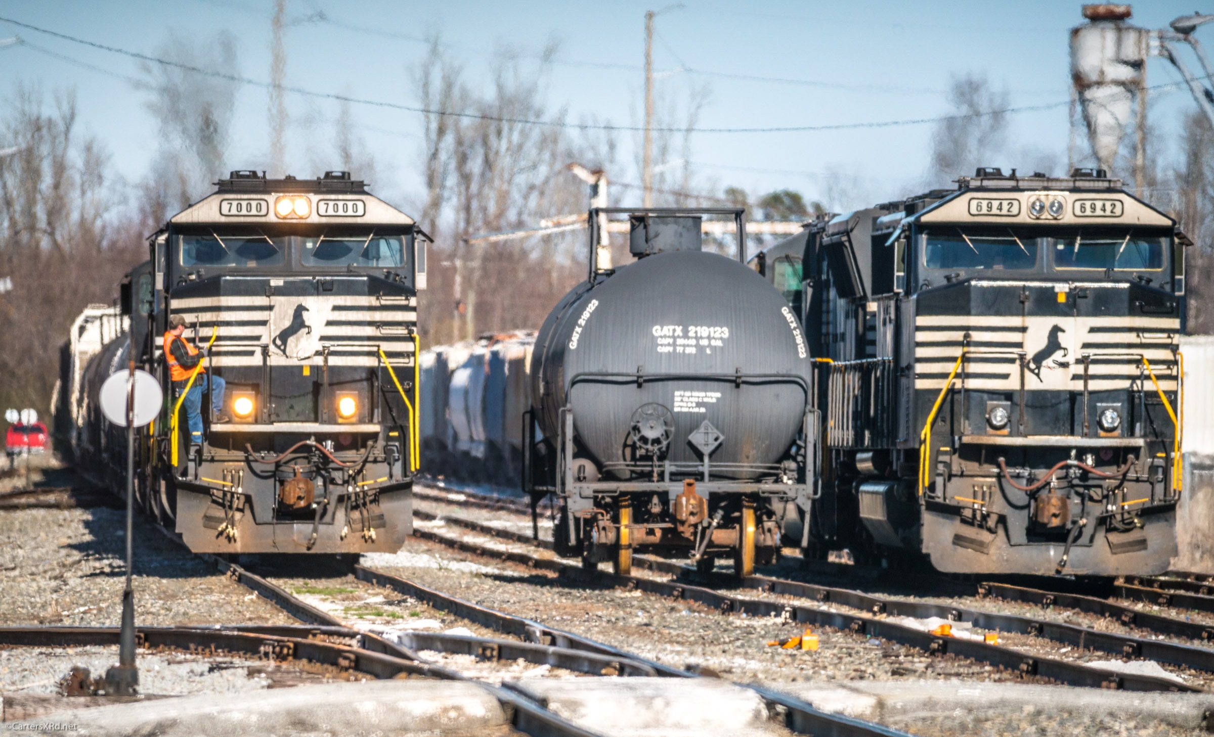 CHOCOWINITY, NC — E52 arrives most days a little after lunchtime with its load of tankers and hopper from the phosphate min near Aurora.  I took this photo January 14, 2018.