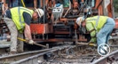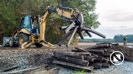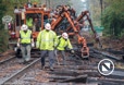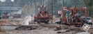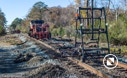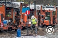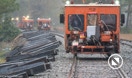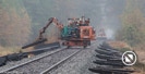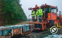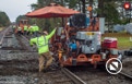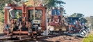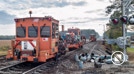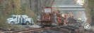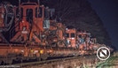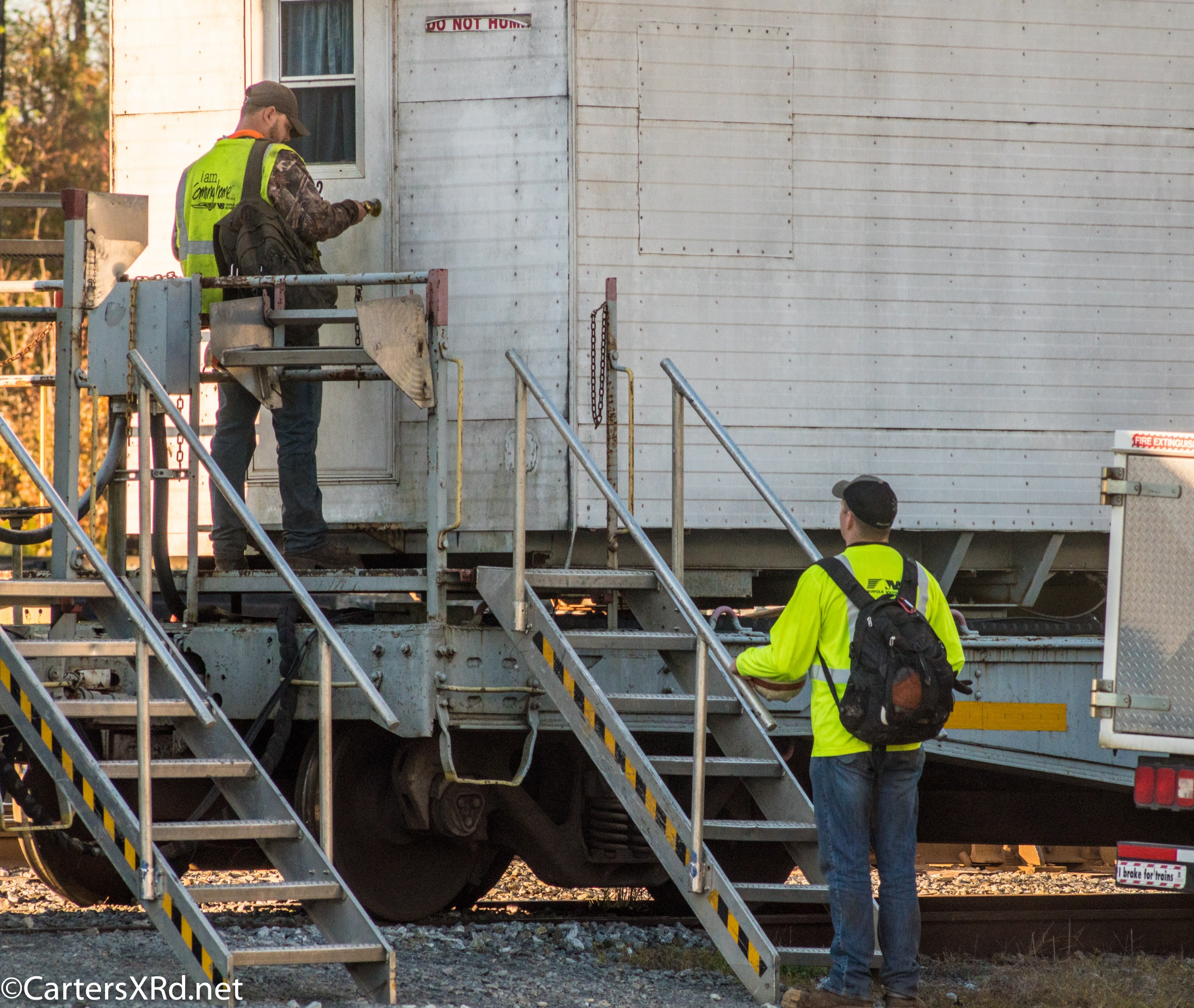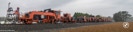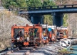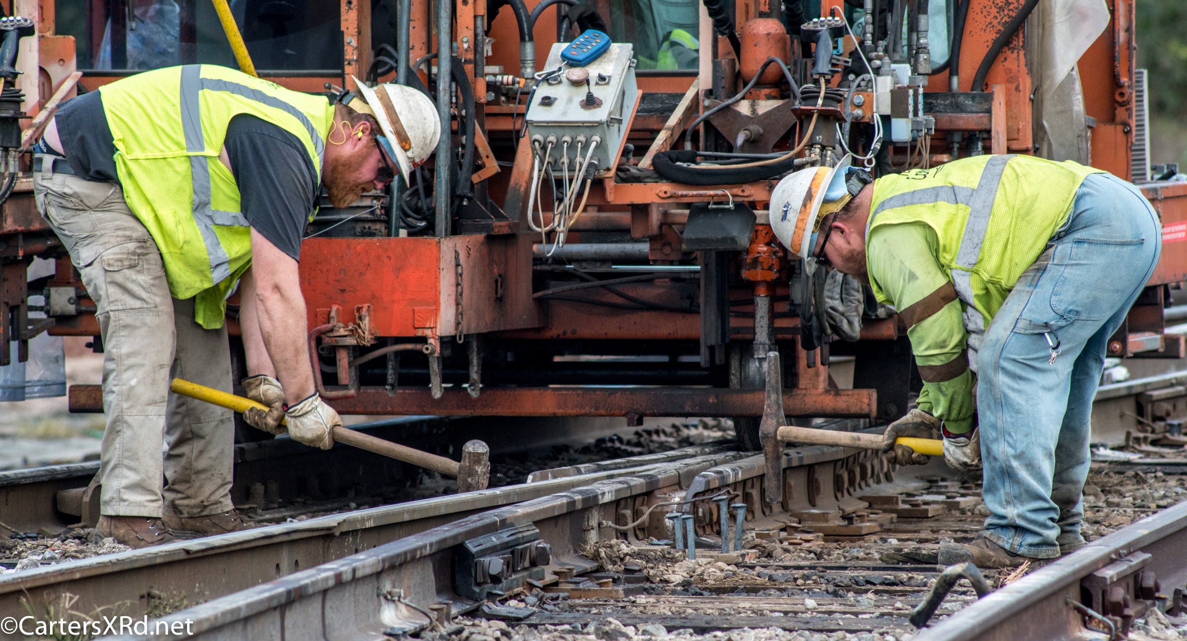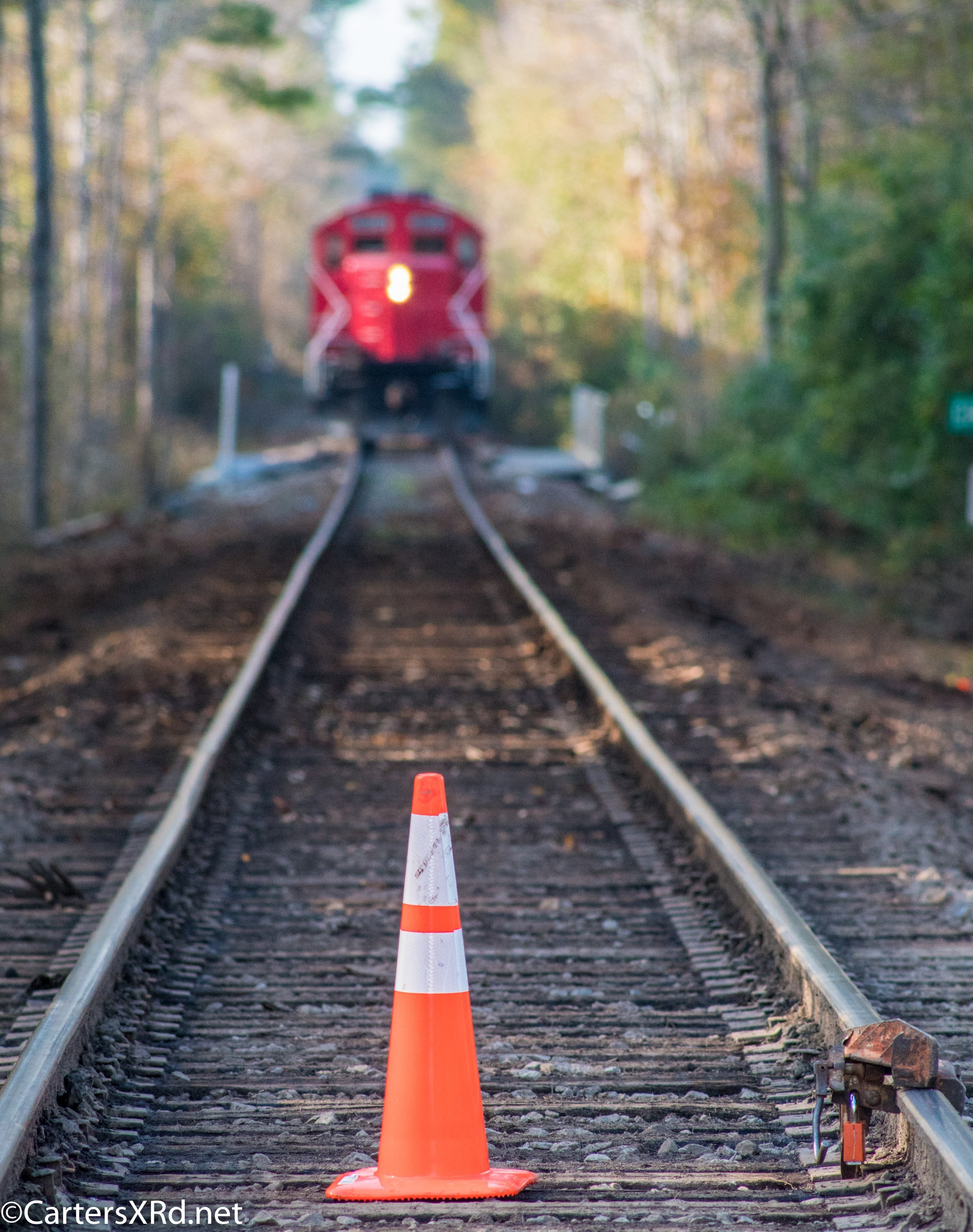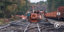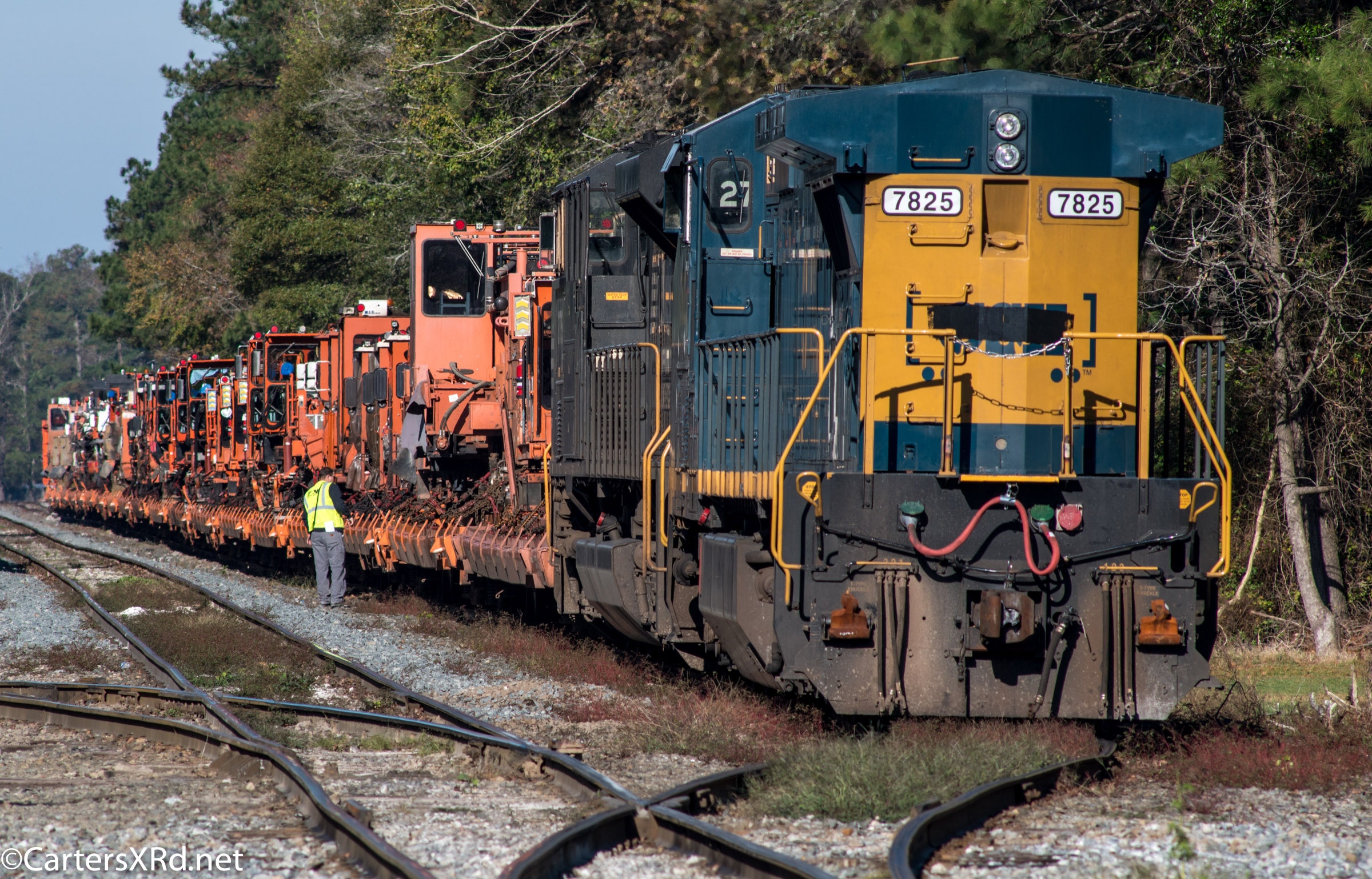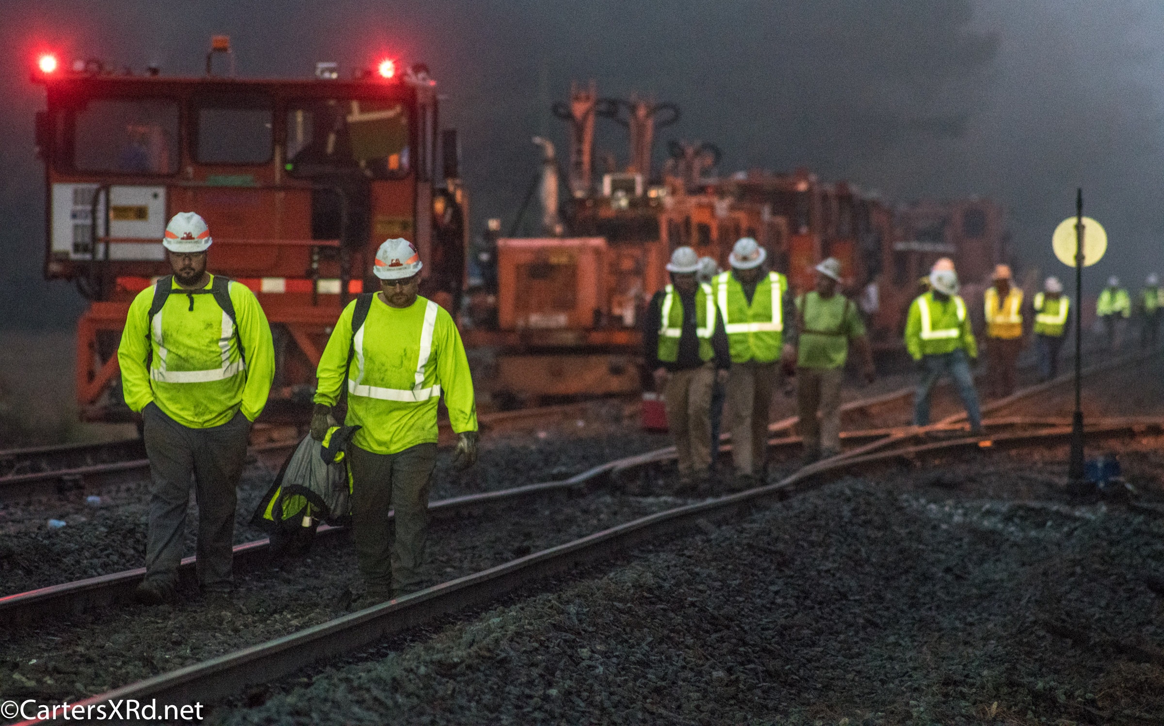 CHOCOWINITY NC — On Saturday November 17, Norfolk Southern’s traveling track crew equipment arrived in town. The train was broken down and distributed around the yard to be ready for Monday’s crew arrival. Monday morning, the crew of nearly 70 men hit the ground, unloaded their train, and cranked up dozens of machines which specialized in some small job that contributed to the finished track work. Each contraption seemed the work of a builder from some unknown place on the scale of madness to genius. This was the week of Thanksgiving, so work had to be finished in three days and the train reloaded if the team was to spend the holiday with their families. They made it. This is condensed gallery. If you are a real railroad fanatic you can find the full galleries here: Setup Weekend, Unload and Day One work, Day Two work, Day Three work and Reload.