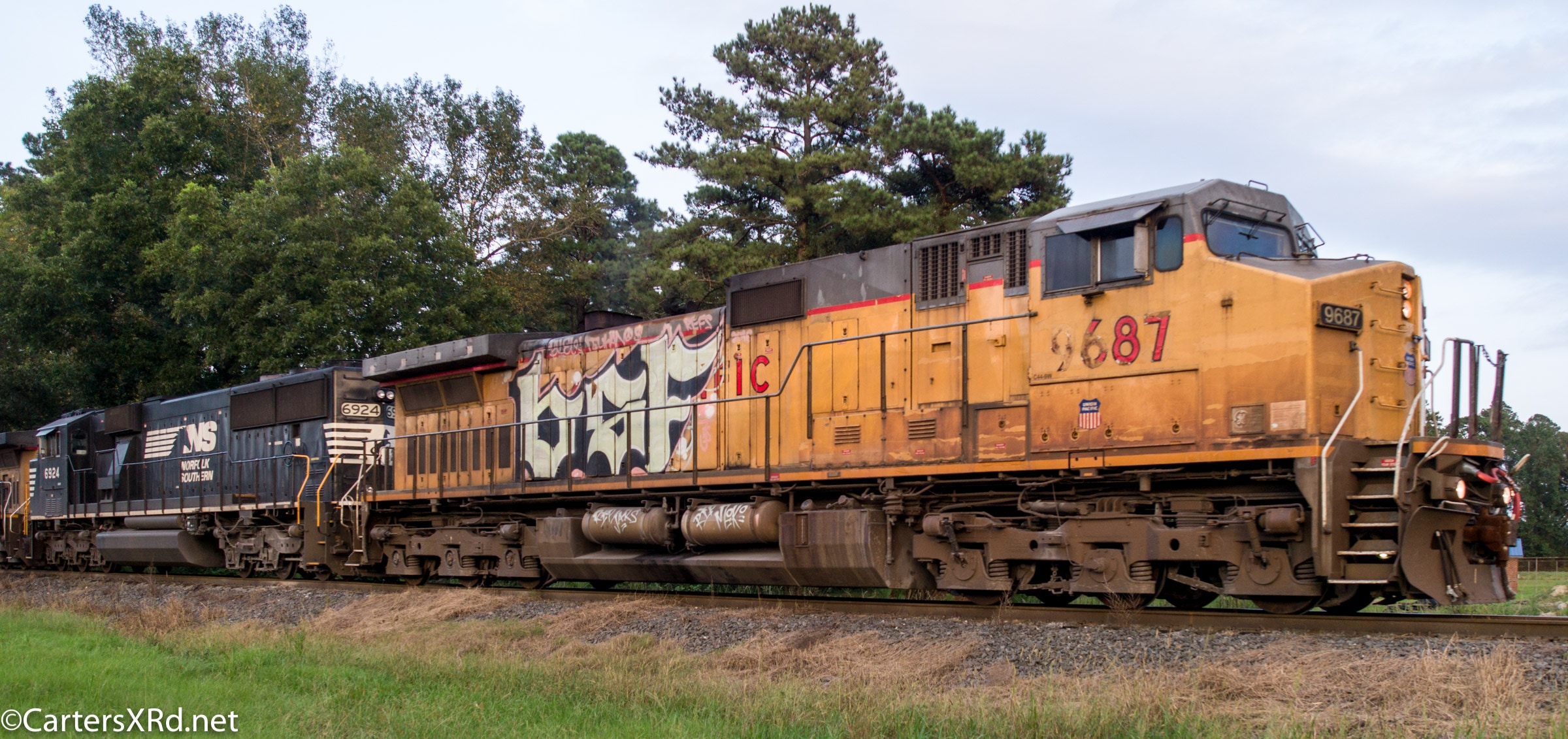 A graffitied Union Pacific loco on Norfolk Southern’s E51, Marsden Yard, Chocowinity