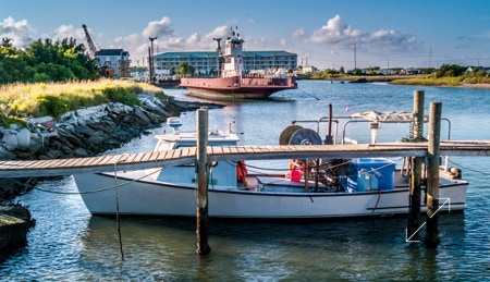 BEAUFORT, NC — A smallish fishing boat takes a day or two off while an old ferry awaits a makeover in a local dock. I took this photo on Radio Island in 2013.