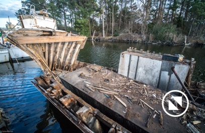 SWAN QUARTER, NC — A large portion of the harbor here has become an area for stripping down old boats for parts and scrap. I took this photo last week.