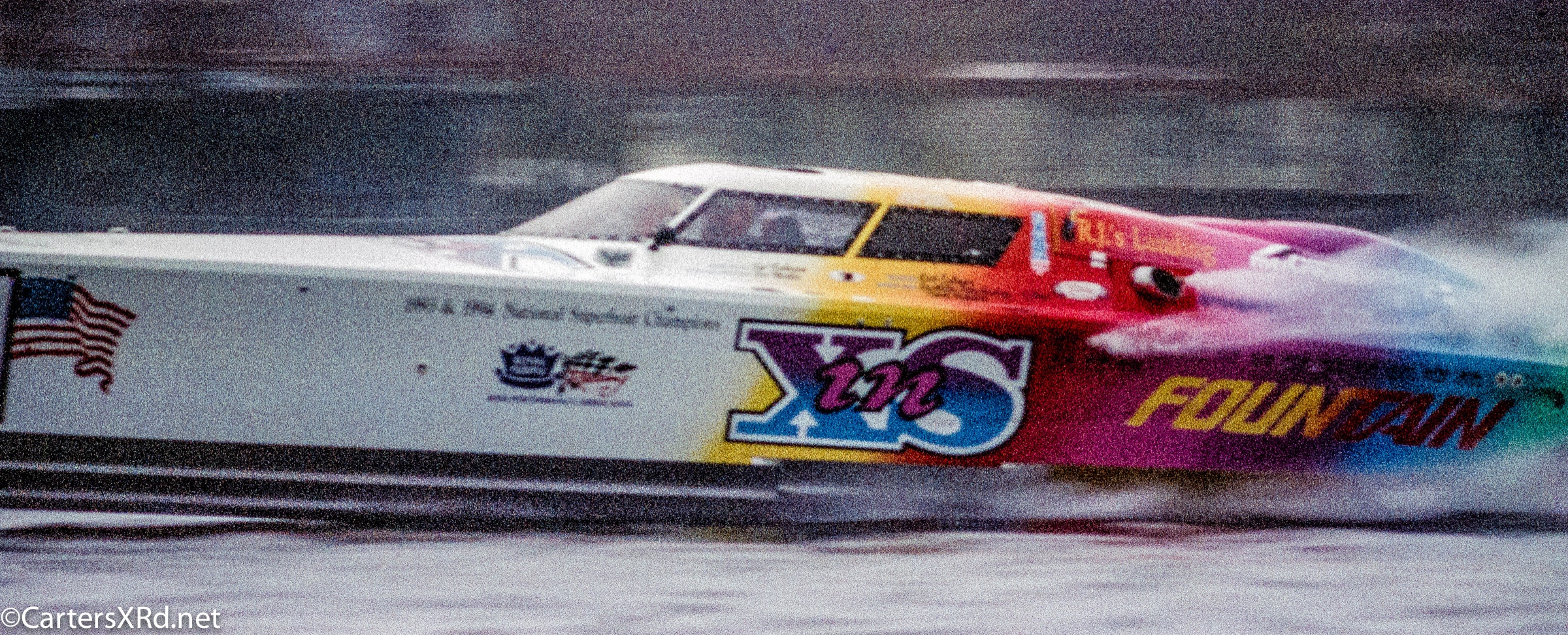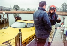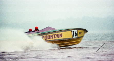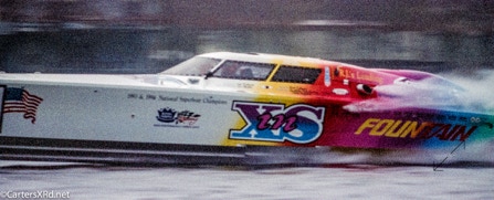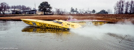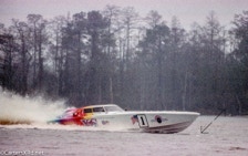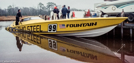 WASHINGTON NC — In 1995, Reggie Fountain brought speed freaks and speedboat aficionados to the top end of the Pamlico River in the pursuit of a world speed record. Lots of hot boats going very, very fast up and down the river off Whichards Beach that weekend. Here is a peek at a few of them. That’s Reggie in the orange helmet. Fountain broke two record with two boats in less than an hour. He set the Super V-bottom world kilo record in inXS by making two-way run at an average 218.118mph. He then broke that record in Ohio Steel at 130.246 mph averaged run. Fountain’s company made both boats. The more familiar open cockpit boat they were famous for is also seen here. Click any photo to fit it to your screen.