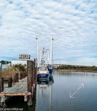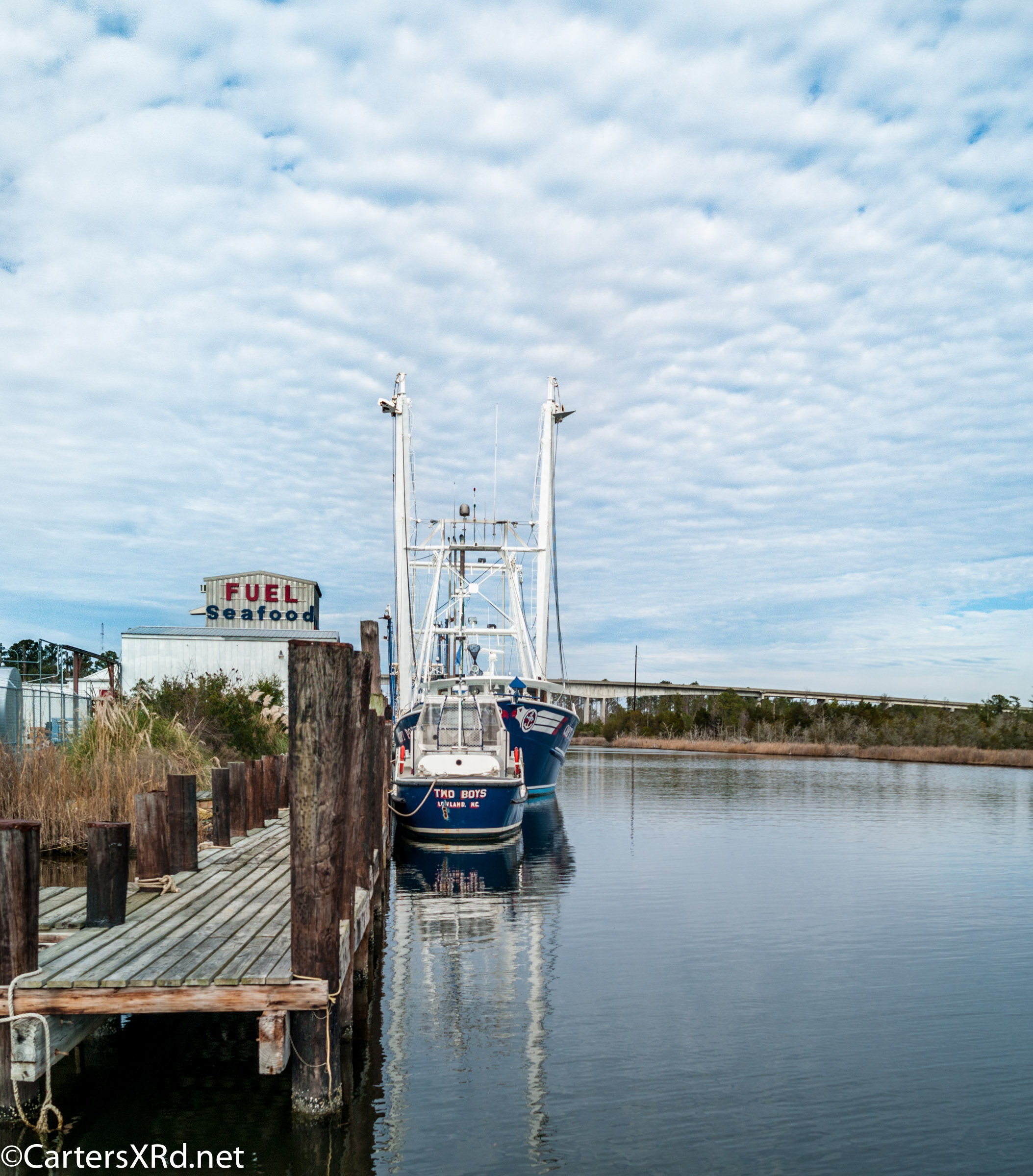 HOBUCKEN, NC — The Hobucken Bridge can be seen in the background as we look up the dock on the Inland Waterway. I took this photo in 2012.